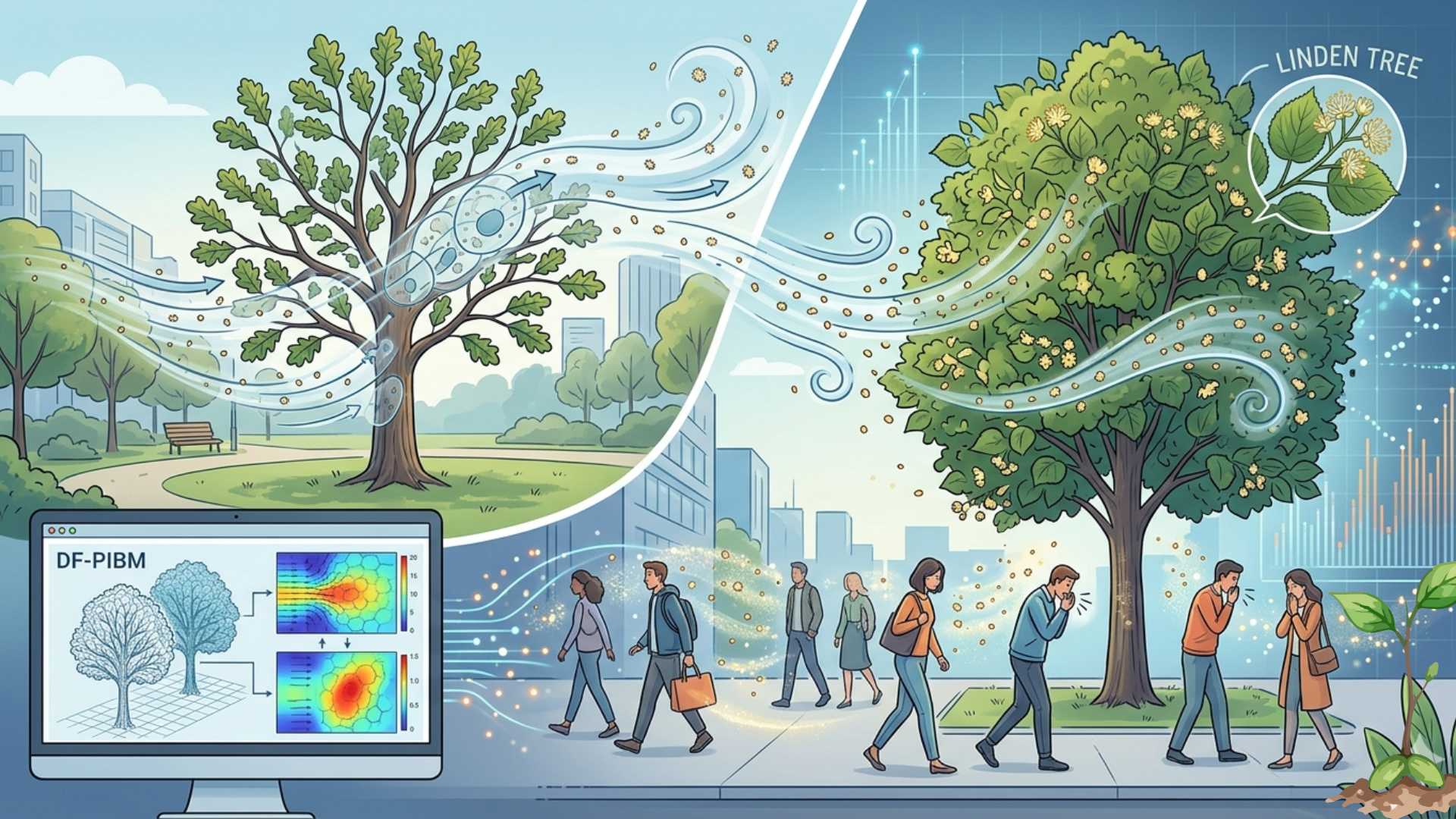 Airborne pollen is a leading cause of allergic rhinitis (hay fever) and asthma globally — affecting an estimated 400 million people worldwide. Climate change is extending pollen seasons and increasing pollen concentrations. Urban tree-planting drives for shade and carbon sequestration are inadvertently intensifying allergen exposure. Until now, scientists lacked precise simulation tools at the single-tree + real urban environment scale.