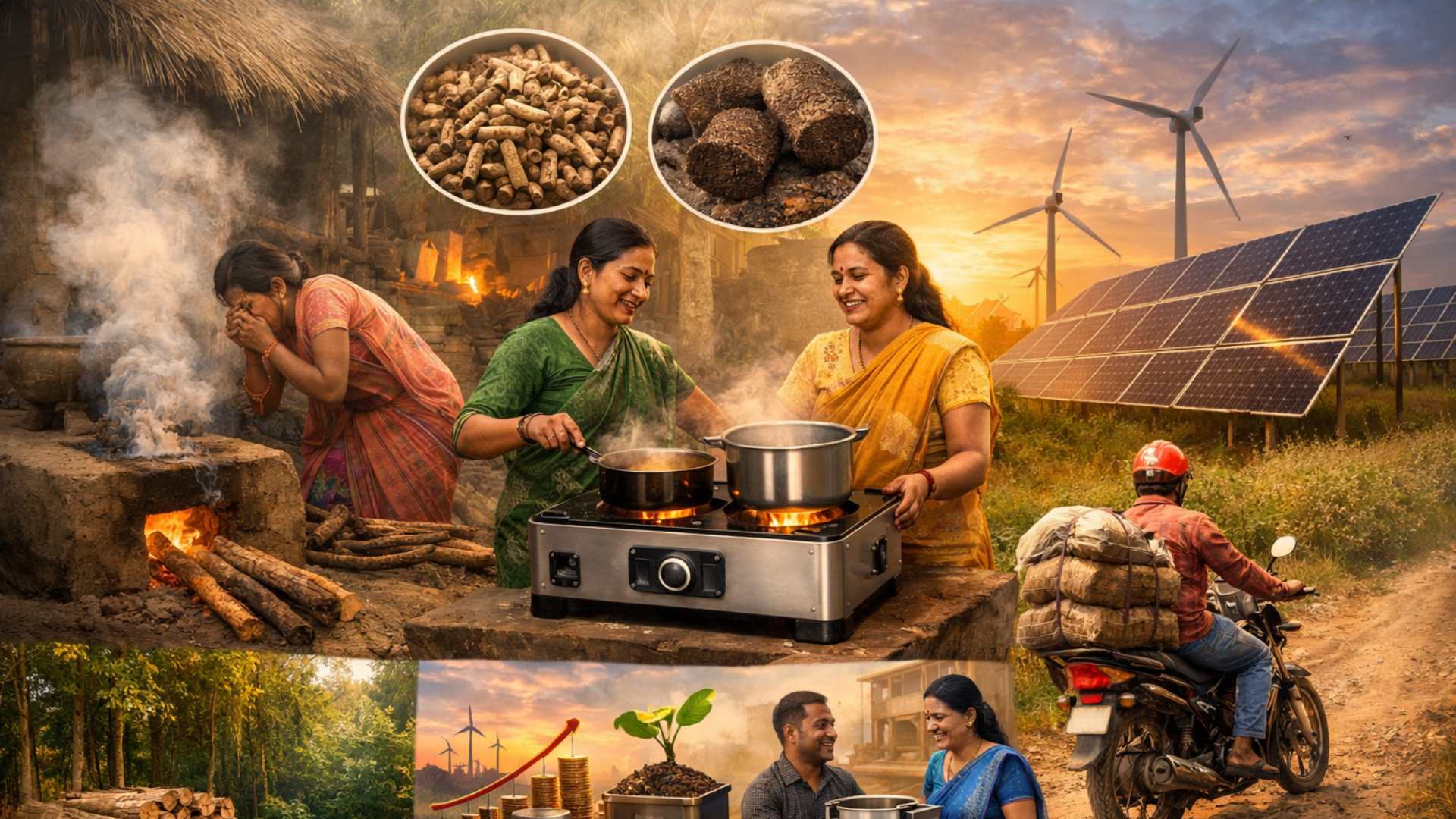 - Shift from raw firewood → processed biomass (pellets, briquettes from sawdust/agricultural waste)